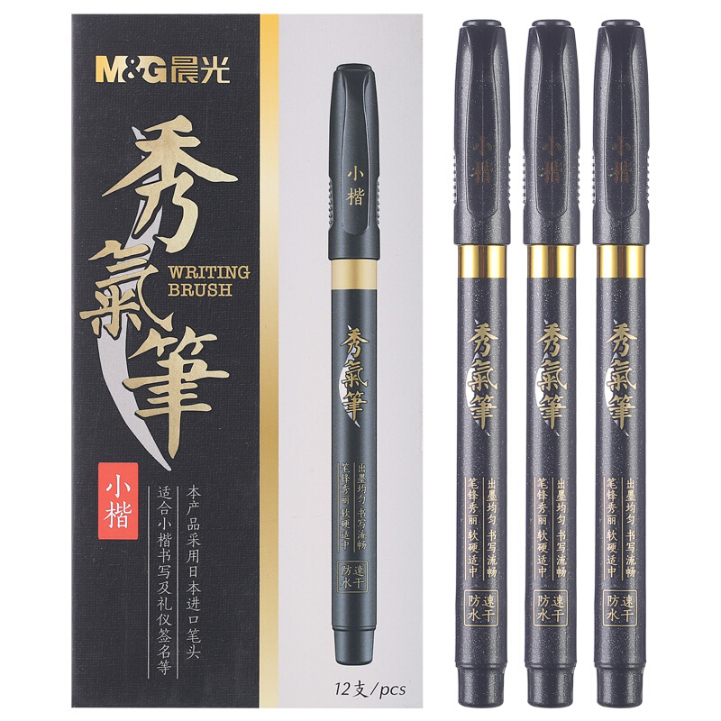 晨光(M&G)文具小楷秀气笔 秀丽笔 书法软笔 抄经笔 签到签名笔 学生练字毛笔 勾线笔 12支装AWBY0103