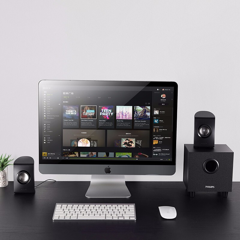 飞利浦(PHILIPS)SPA1330电脑音箱 音响 台式笔记本桌面2.1声道有源重低音木质低音炮 黑色