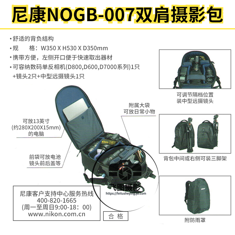 • 尼康NOGB-007 原装定制相机包大型双肩摄影包旅游包 黑色 适用于尼康D5 D500 D4S D3X