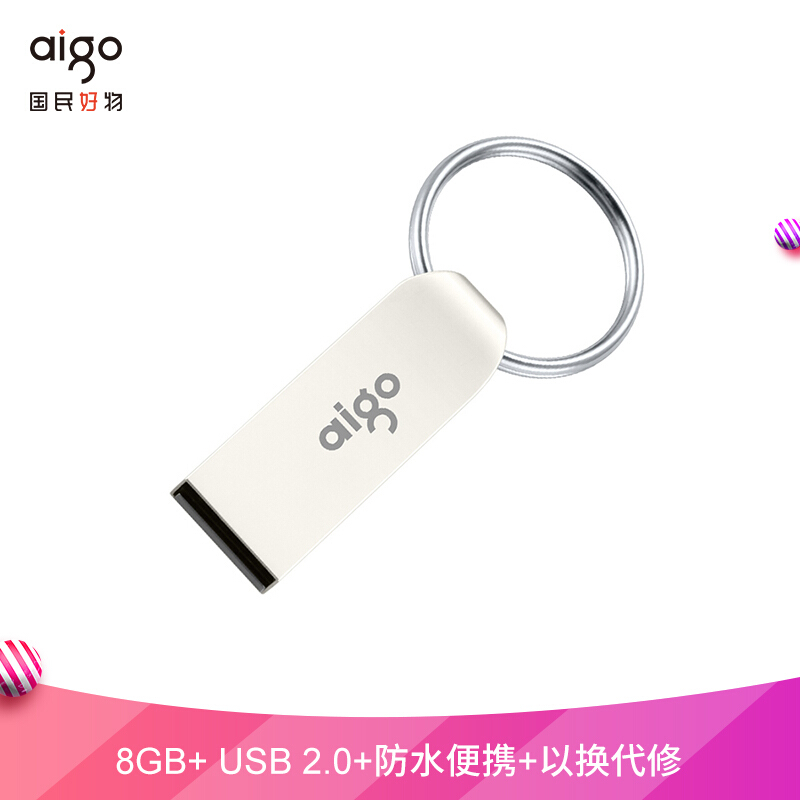 • 爱国者(aigo)8GB USB2.0 U盘 U268迷你款 银色 金属车载U盘