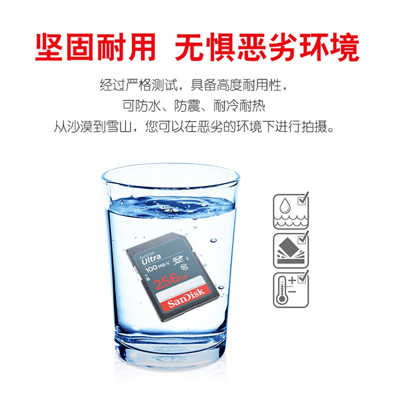 闪迪(SanDisk)256GB SD存储卡 C10 至尊高速版 读速100MB/s 耐冷耐热 防水抗冲击