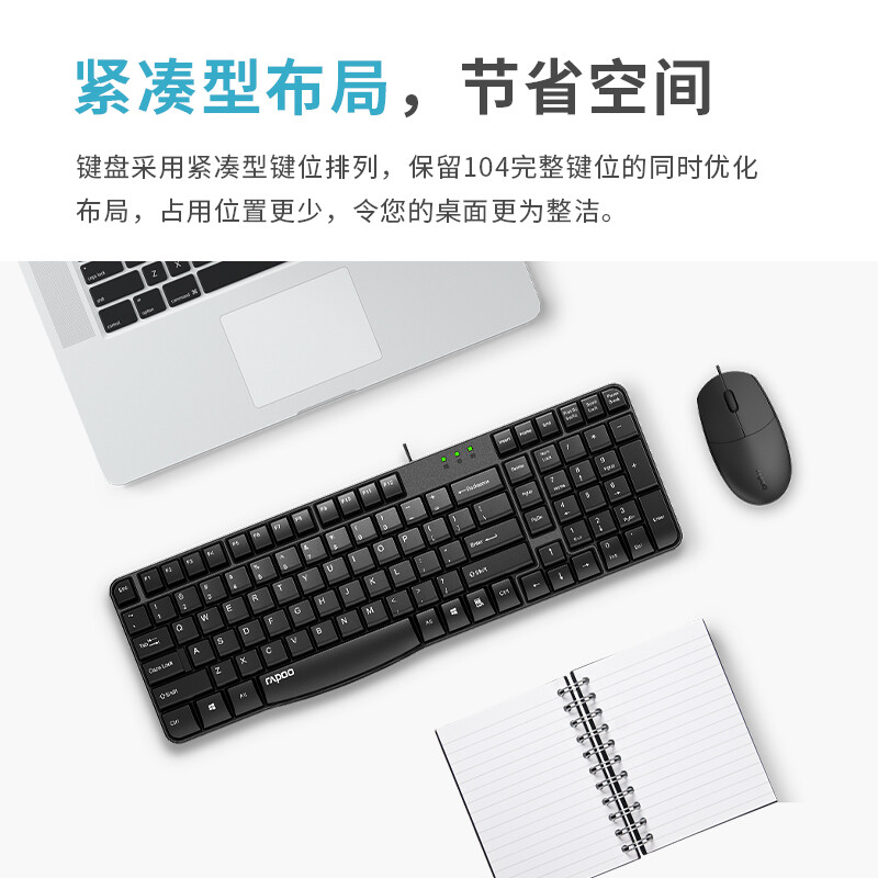 雷柏(Rapoo) X100S 键鼠套装 有线键鼠套装 防泼溅 电脑键盘 笔记本键盘 黑色