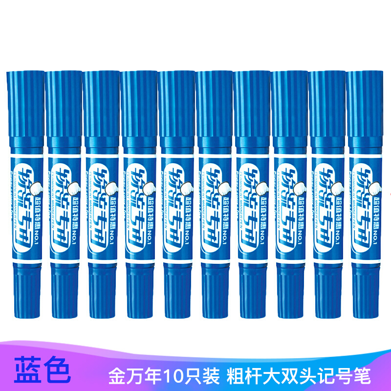 金万年G-0918 粗细杆大/小双头多用物流油性记号笔绘画勾线笔描线笔光盘笔补充墨水 10支蓝色/粗杆大双头