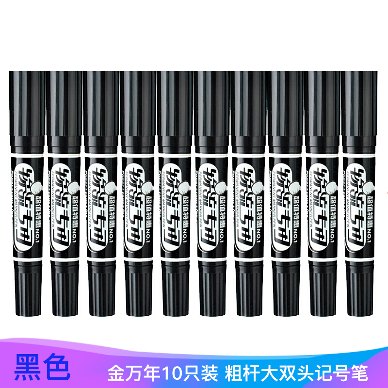 金万年(Genvana) G-0918 粗细杆大/小双头多用物流油性记号笔绘画勾线笔描线笔光盘笔补充墨水 10支黑色/粗杆大双头