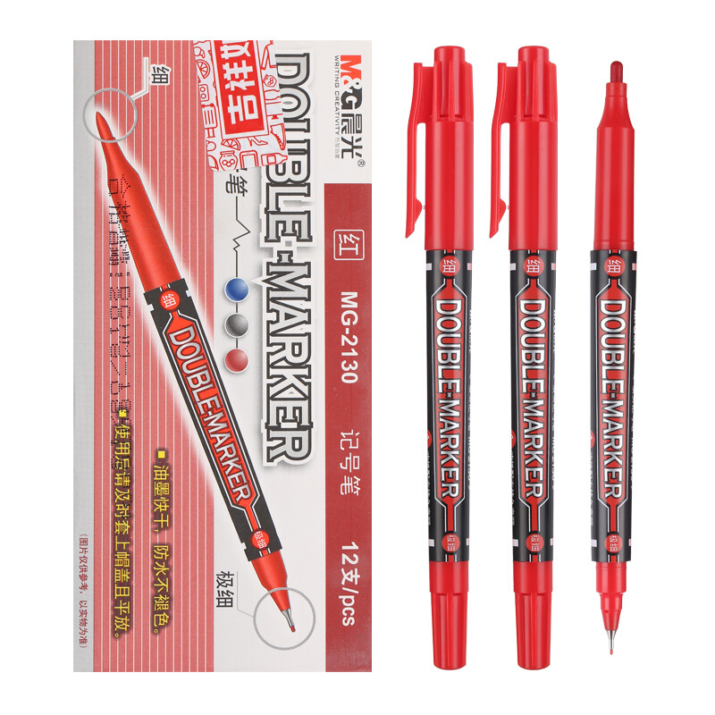 • 晨光MG2130红色双头记号笔 12支/盒