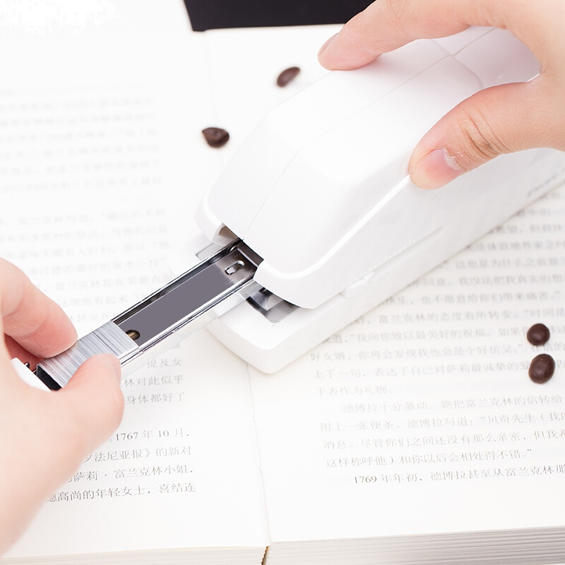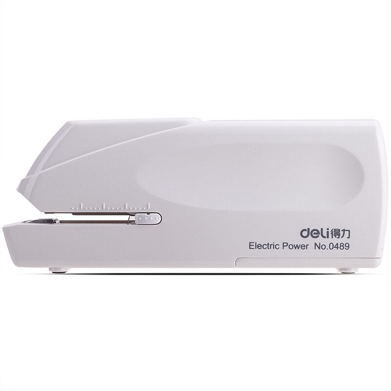 得力(deli)双电源电动订书机 电子自动装订订书器 适配24/6或26/6订书钉 办公用品 白色0489