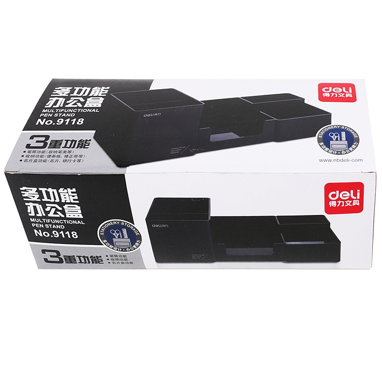 得力多功能笔筒桌面收纳盒多隔收纳 9118黑色塑料多功能收纳盒