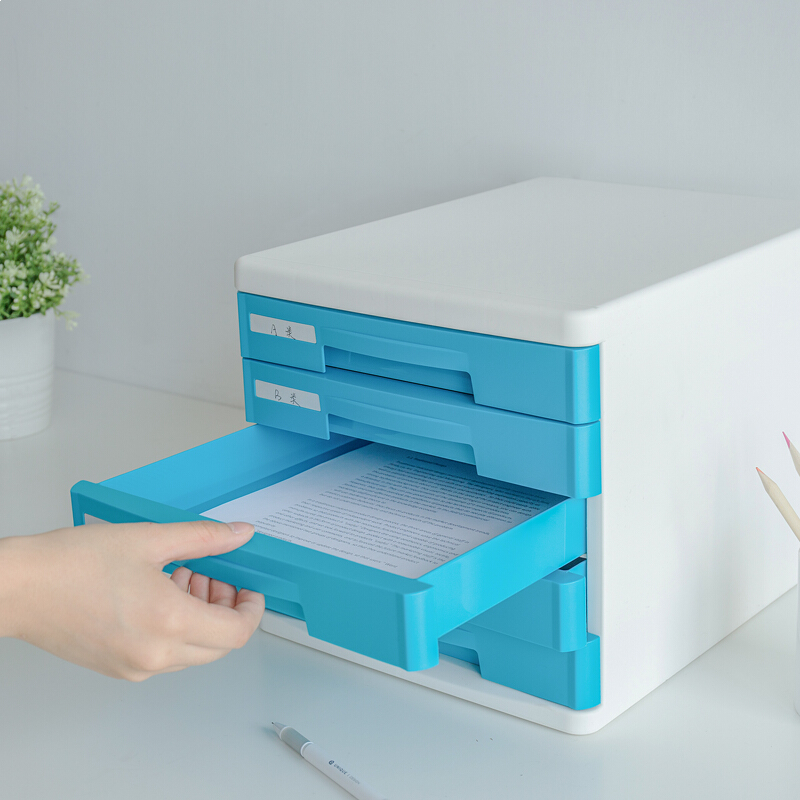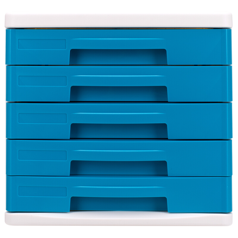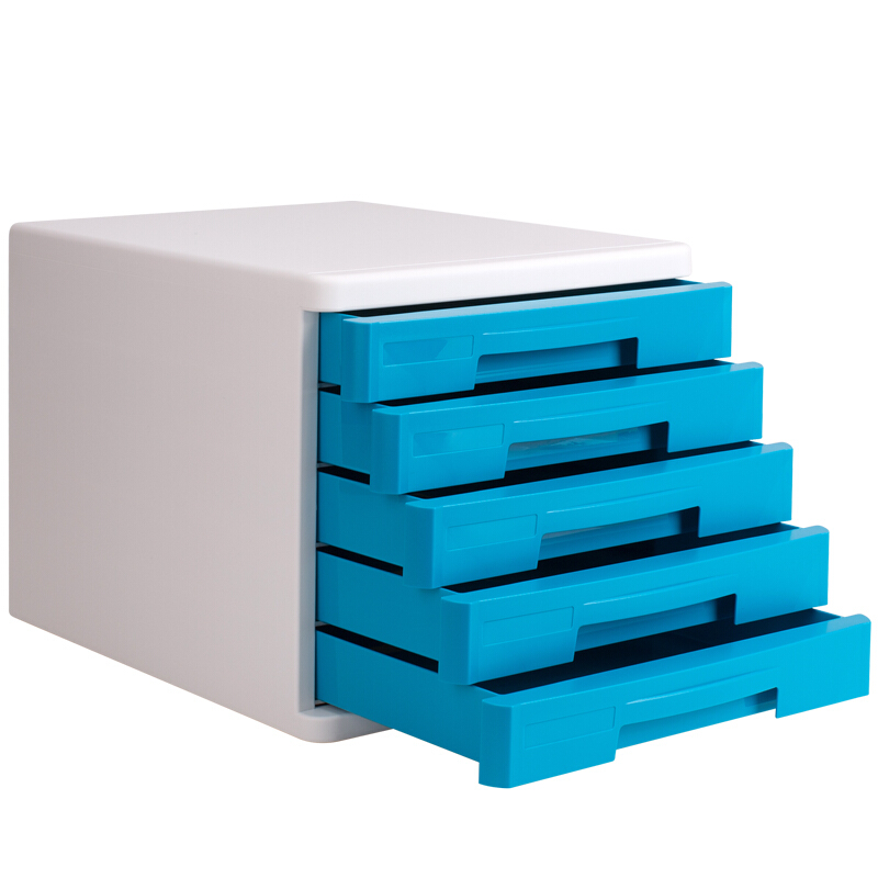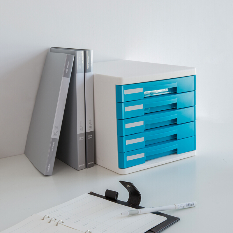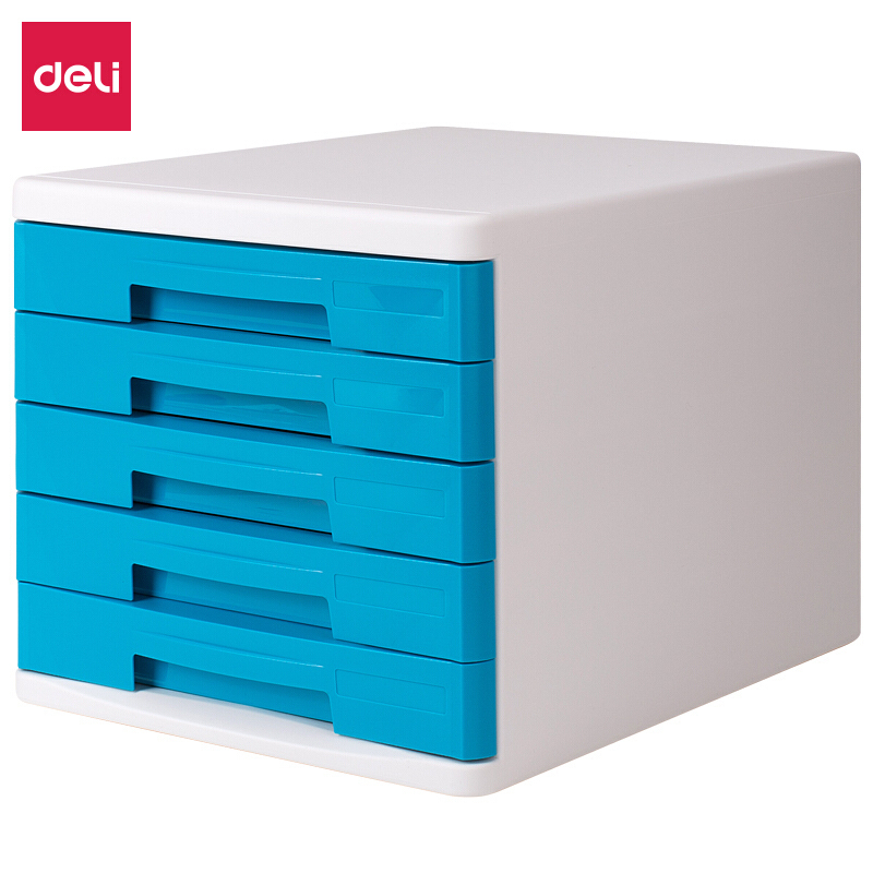 得力5层手拉桌面文件柜 带索引标签抽屉资料收纳柜 蓝色9762