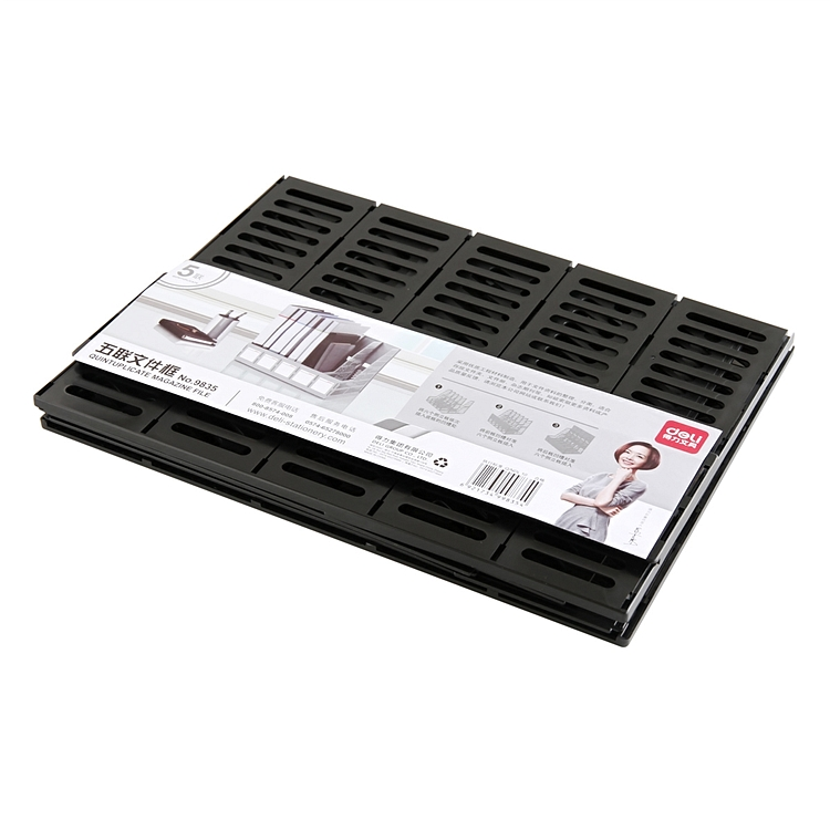 得力 文件框文件筐资料筐文件篮文件架 四联/三联 办公用品 五联文件框(9835黑色)