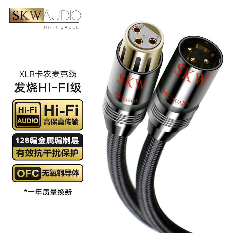 • SKW 发烧级 XLR卡侬麦克风线 抗干扰 卡农公对母话筒音频线 调音台直播K歌声卡音箱户外演出连接线 ZD01-50米