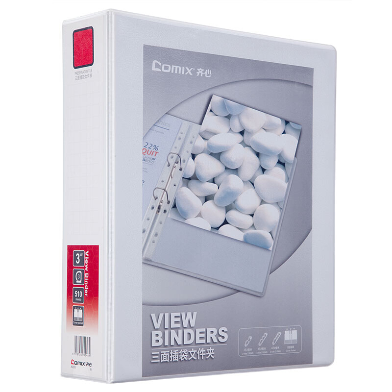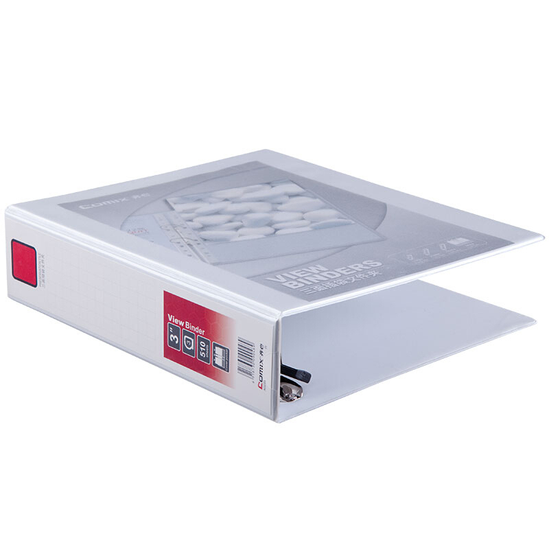 齐心(Comix)A4文件夹 易展示美式三面插袋资料册 3英寸2孔 办公用品 白 A0234