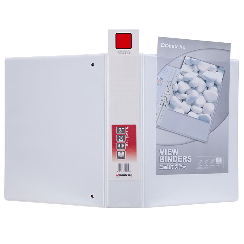 齐心(A0234 A4文件夹 易展示美式三面插袋资料册 3英寸2孔 白