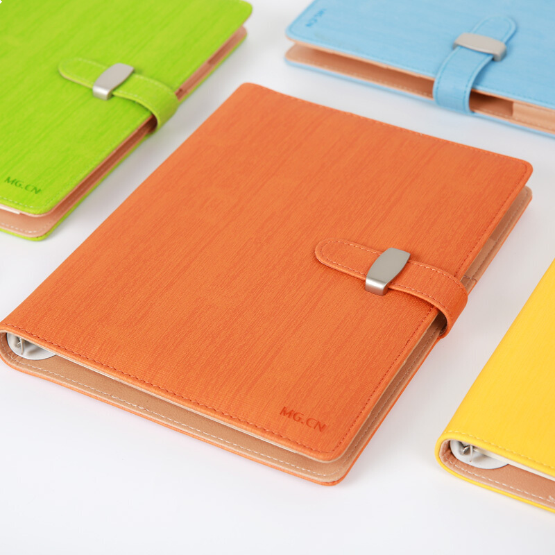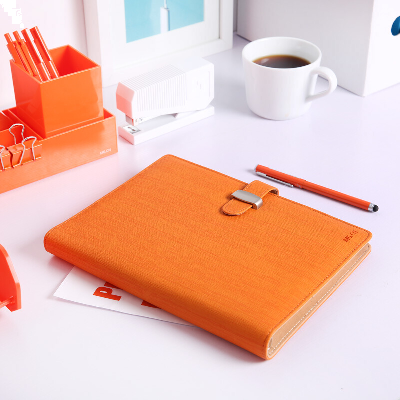 晨光(M&G)文具A5/80页橙色学生皮面笔记本 插扣活页本皮革本 商务办公记事笔记本子 单本装APYG4811