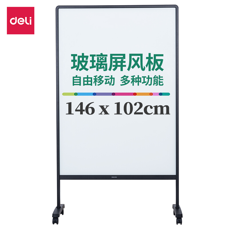 得力(deli)钢化玻璃屏风白板180*102cm H型支架可移动白板双面磁性写字板 留言板 绒布软木板50060