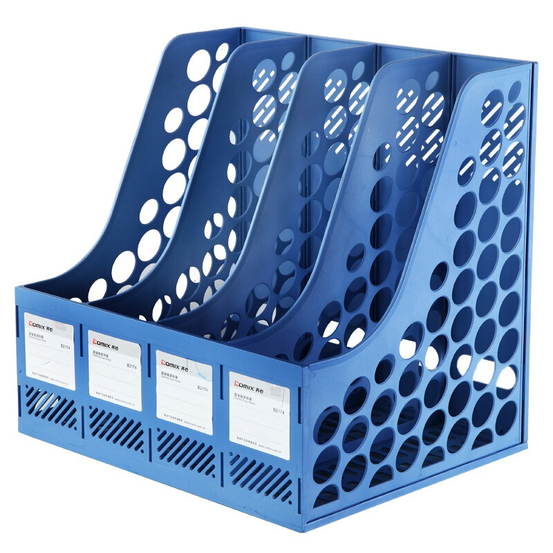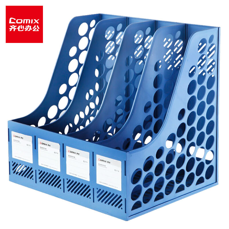 • 齐心B2174 牢固耐用四联文件架 办公用品文件框文件筐资料架文件收纳栏 蓝色