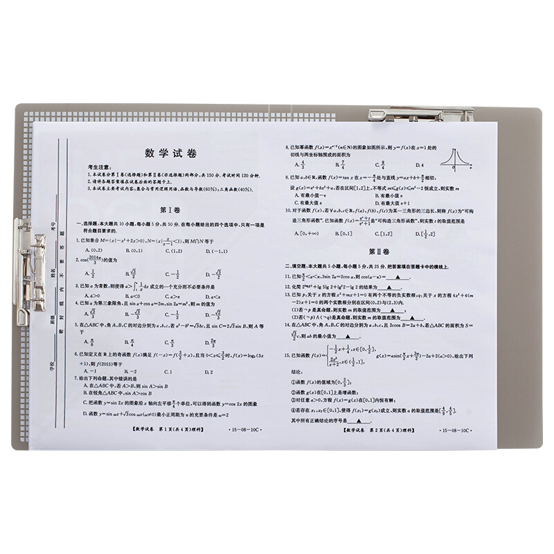 齐心(Comix) 学生试卷夹 A3/A4两用文件夹 A3702 烟雨灰 马赛双强力夹