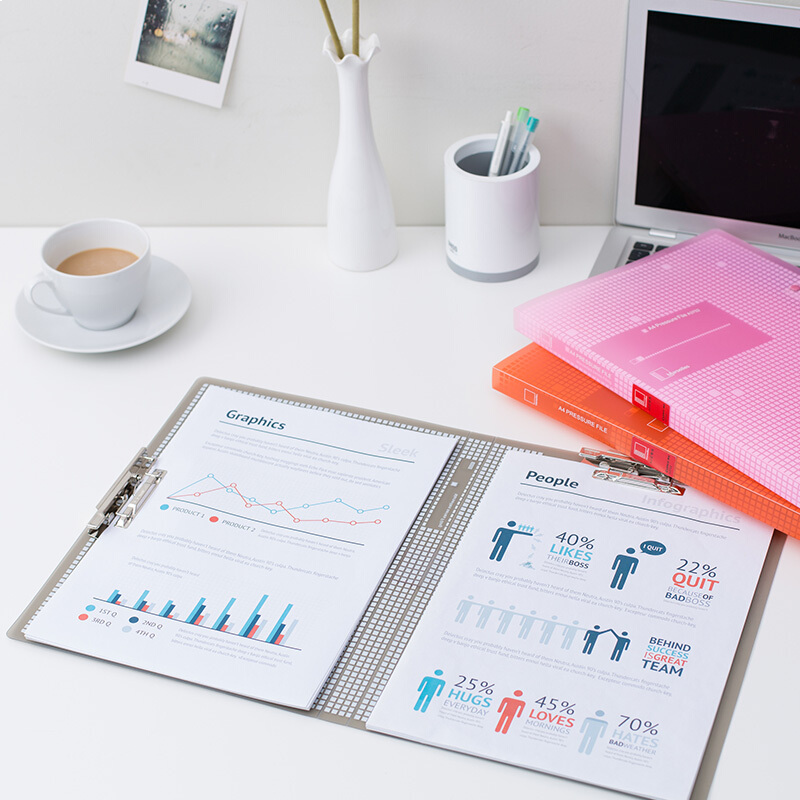 • 齐心(COMIX) 强力文件夹竖式A4横式A3两用强力双夹学生试卷夹资料夹档案夹 A3702 烟雨灰