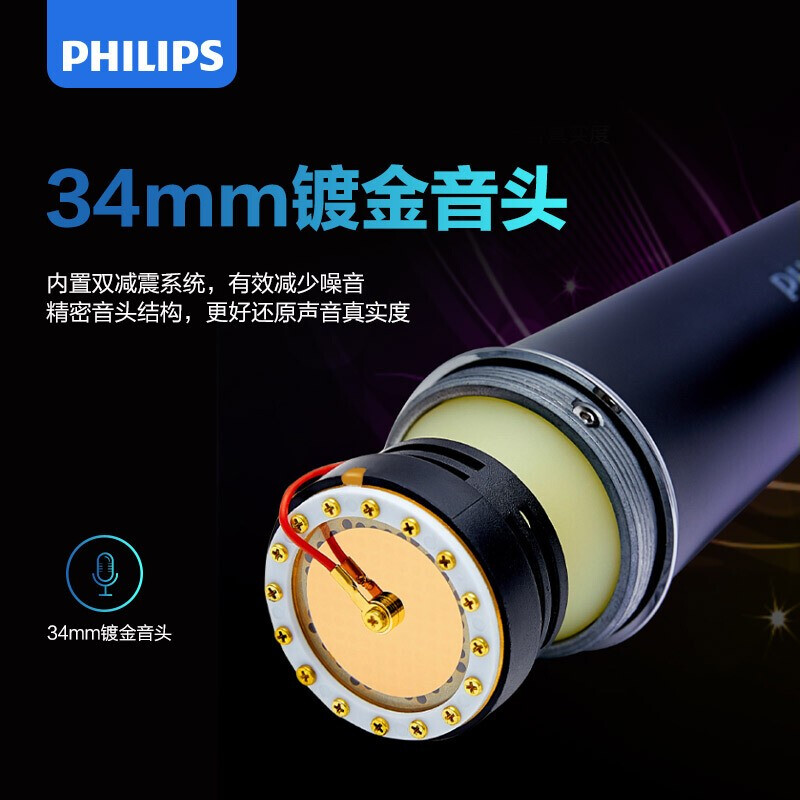 • 飞利浦(PHILIPS)麦克风全民K歌有线话筒演出主持吉他弹唱家用K歌录音直播 黑色