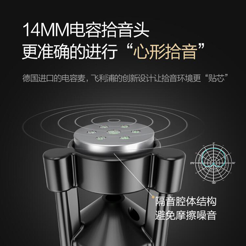 飞利浦K38001 手机麦克风 主播直播全民K歌专用话筒 苹果安卓电容麦 电脑家庭音响唱歌 香槟金