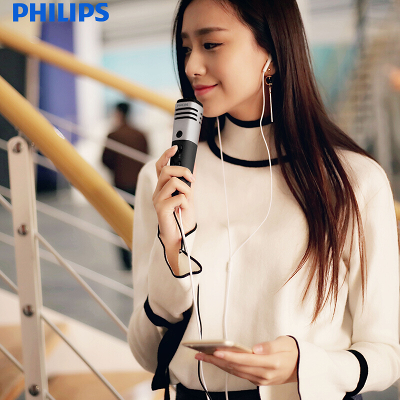 • 飞利浦K38001 手机麦克风 主播直播全民K歌专用话筒 苹果安卓电容麦 电脑家庭音响唱歌 香槟金