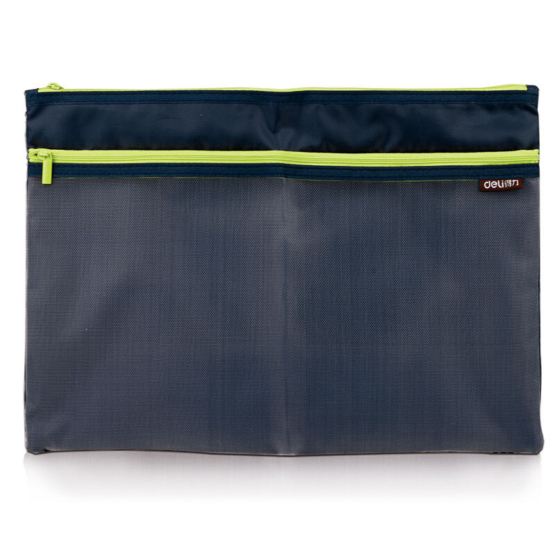 得力(deli) 拉链袋文件袋 炫彩双层收纳袋/票据袋笔袋 A4/A5 办公用品 5841 A4 浅蓝色