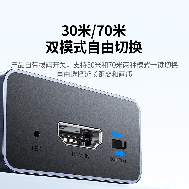 • 绿联HDMI延长器70米 4K60Hz高清单网线RJ45转HDMI视频传输器网传转换器 网络信号放大器 一对装 65366