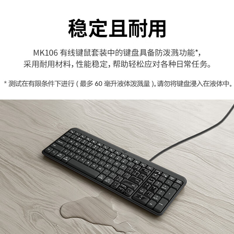 罗技(Logitech)MK106 键鼠套装 有线键鼠套装 办公键鼠套装 电脑键盘 紧凑型 黑色