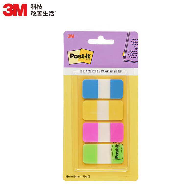 • 3M 便利贴 便条纸/报事贴/便签纸/指示标签 抽取式厚标签4色装-48页 686-4NB
