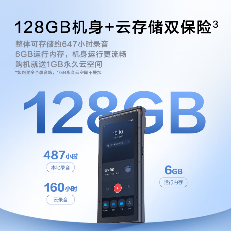 • 科大讯飞AI录音笔S6 Plus 免费录音转文字 同声转译 会议纪要 专业录音设备录音神器 超远距离录音机 128GB