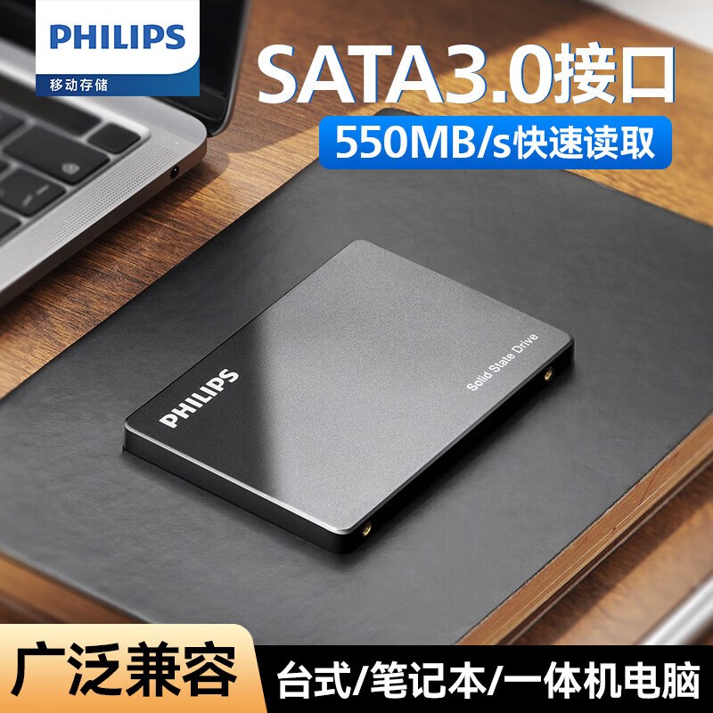 • 飞利浦 SSD固态硬盘550M/S SATA3.0接口 笔记本台式机通用SATA3.0高速全新读速 曜黑色550M/S 【256G】SATA3.0
