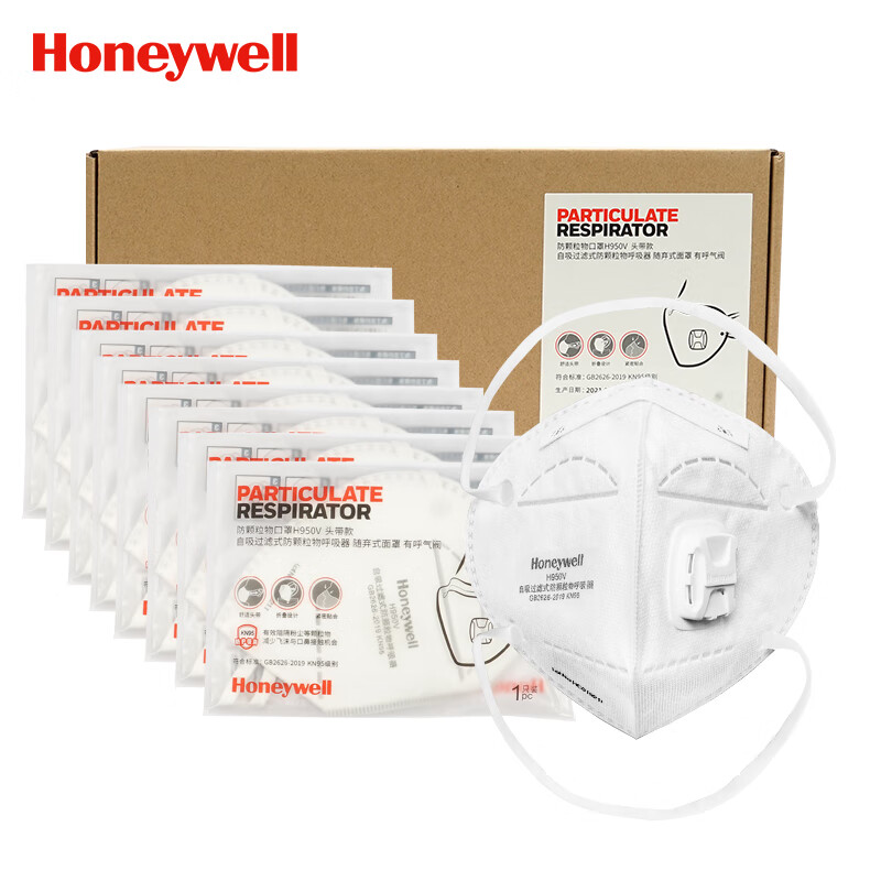 • 霍尼韦尔(Honeywell)KN95防尘口罩 H950V 防飞沫打磨工业粉尘雾霾 带阀头戴式 25只