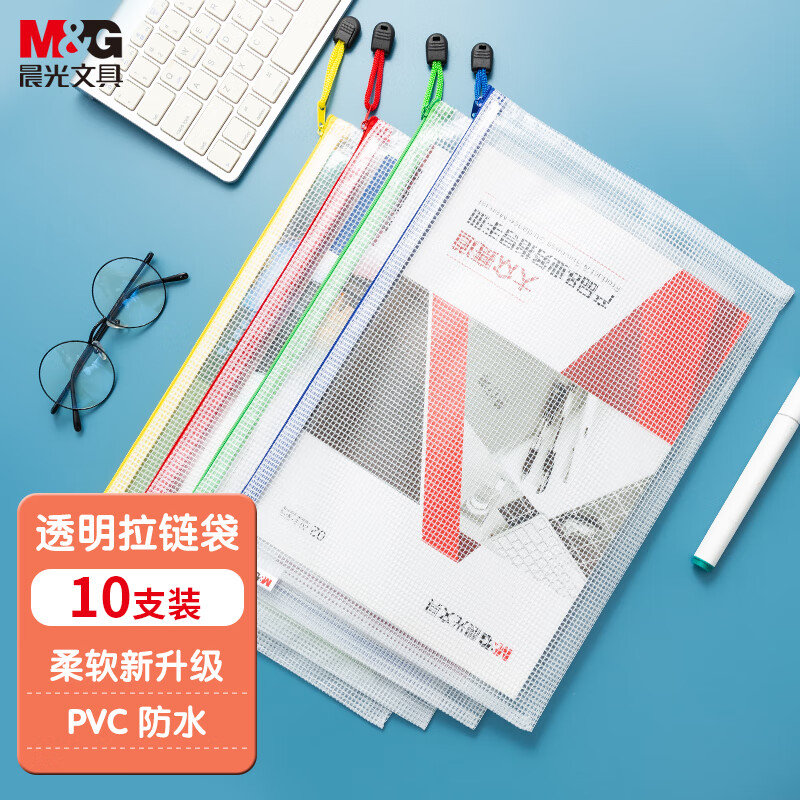 • 晨光(M&G)文具 10个装 A4 网格拉链袋 ADM945M7