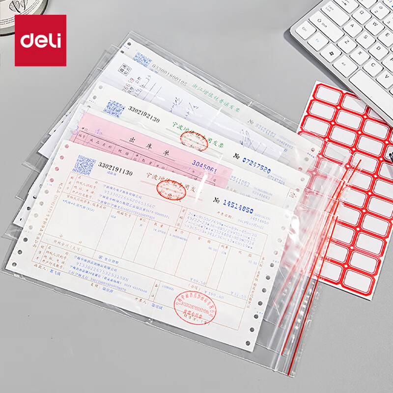 • 得力(deli)发票专用自封袋26*16cm 加厚透明封口袋100只(附80张标签) 19250