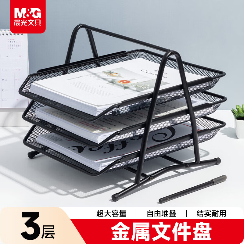 • 晨光(M&G) 文件座金属三层文件架子多层资料书架桌面学生办公整理文件盘分层架收纳框 1个装ADM94754