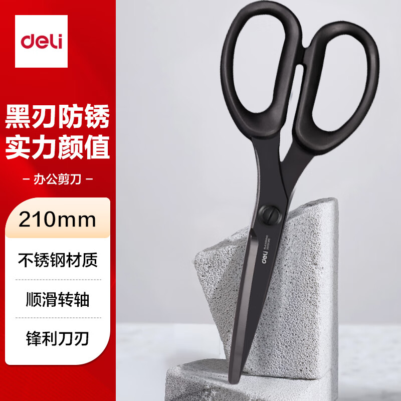 得力(deli)(deli)210mm 剪刀 黑色防锈处理 办公用品 黑77794