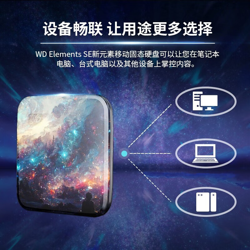 • 西部数据(WD)移动固态硬盘(PSSD)Elements SE新元素SSD 便携迷你1TB WDBAYN0010BBK/XCDH