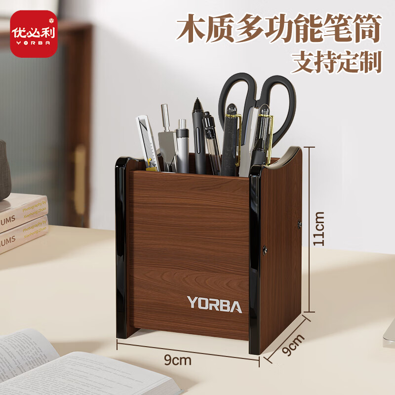 • 优必利 木质笔筒桌面收纳盒 方形笔筒 办公桌整理架商务桌面收纳 6002A
