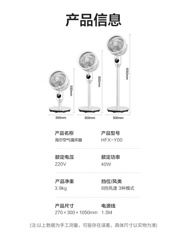 • 海尔(Haier)空气循环扇遥控触屏香薰抑菌交流定频电风扇家用卧室轻音风扇落地扇省电台式小风扇空调扇HFX-Y00