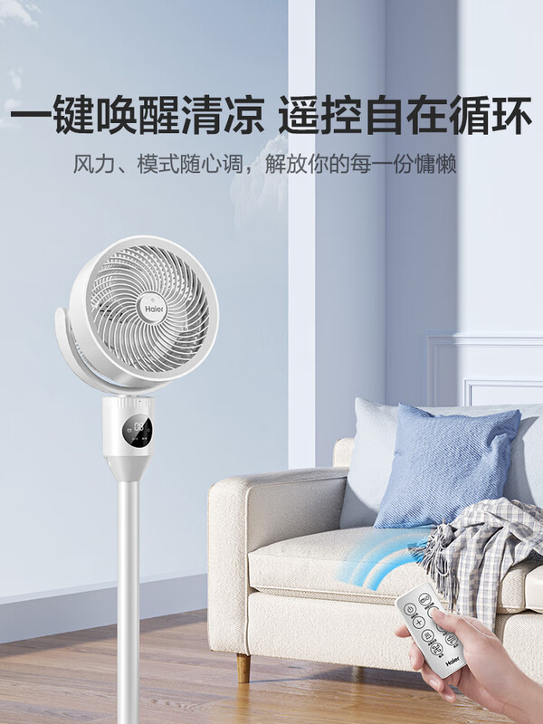 • 海尔(Haier)空气循环扇遥控触屏香薰抑菌电风扇交流定频家用卧室轻音风扇落地省电台式小风扇空调扇HFX-Y00D