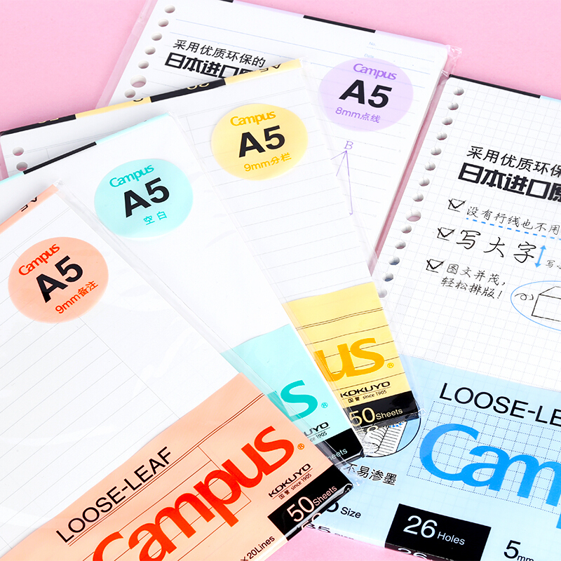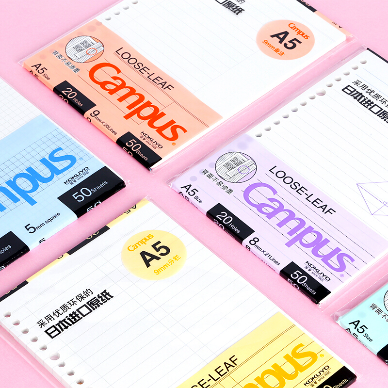 • 国誉活页本替芯方格笔记本子记事20孔26孔内芯文具手帐本夹线圈网格错题空白替换芯 A58mm横线100页