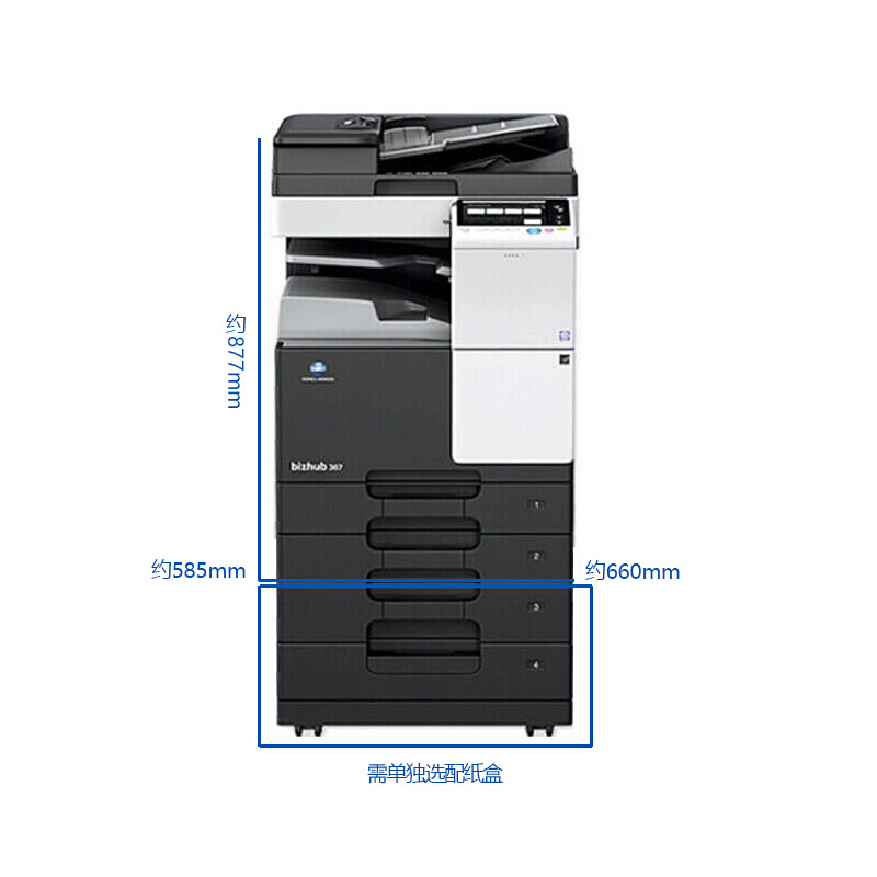 柯尼卡美能达 bizhub 367 A3黑白数码一体机 主机+输稿器+第三第四纸盒+外置装订器