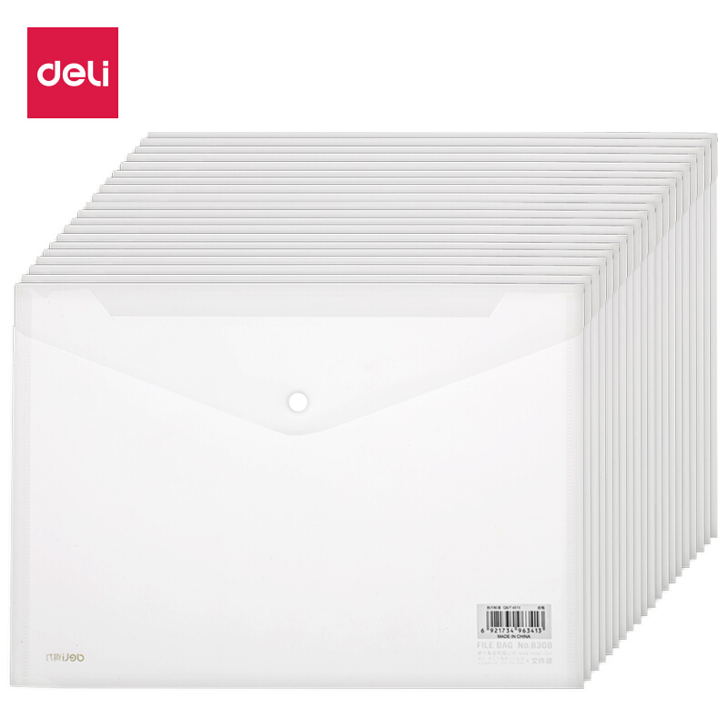 • 得力27008 A4透明按扣文件袋 资料收纳袋20只 塑料防水档案袋