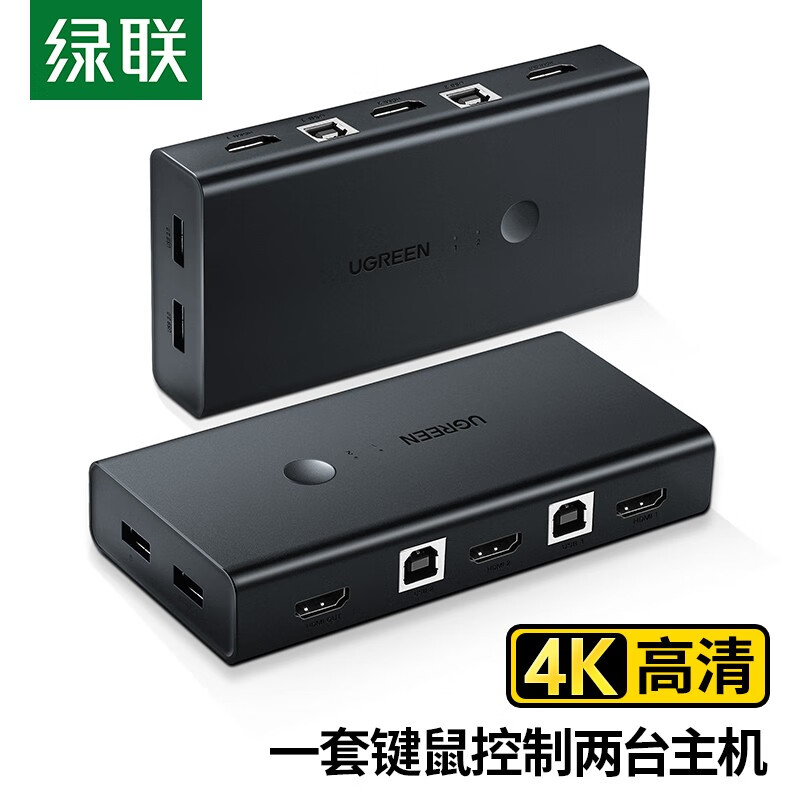 • 绿联 KVM切换器 HDMI切屏器2进1出4K高清 USB打印机共享器 CM200 两台电脑共享台显示器自动切换 KVM 50744