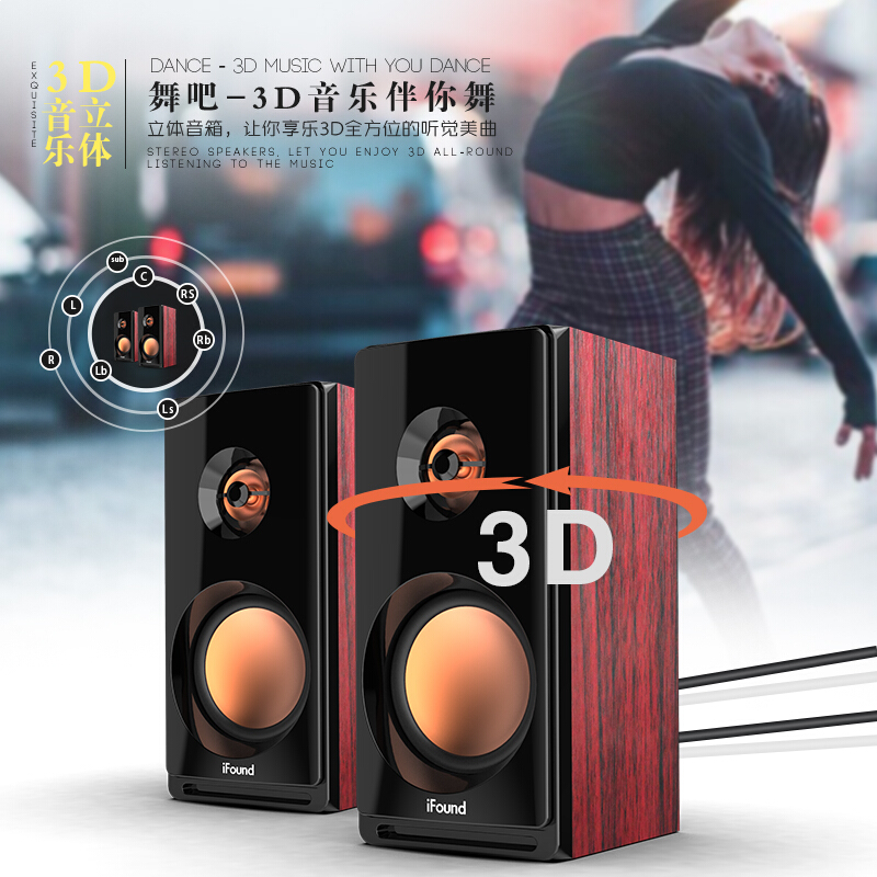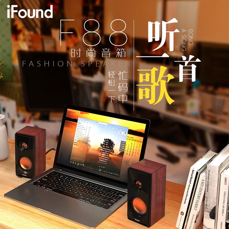 • 方正(iFound)F88音响 木质音箱电脑音箱Hifi2.0音响台式机有源多媒体笔记本木质小音箱电视音响家用